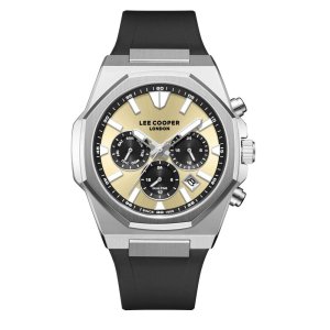 Pánske náramkové hodinky Napájanie z batérie Priemer puzdra 44,0 mm Puzdro v tvare osemhranu Kovové puzdro Strieborná farba puzdra ČIERNE farba ťahu Ručičkový ciferník Zlatavá farba ciferníka Ciferník …