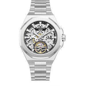Pánske náramkové hodinky Napájanie z batérie Strojček MIYOTA 6P26 Priemer puzdra 42,5 mm Puzdro v tvare kruhu Oceľové puzdro Strieborná farba puzdra Oceľový ťah Strieborná farba ťahu Ručičkový ciferník …