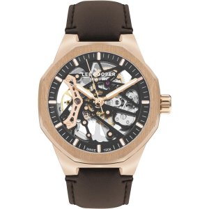 Pánske náramkové hodinky Automatický pohon Priemer puzdra 43,0 mm Puzdro v tvare osemhranu Kovové puzdro Ružové zlato farba puzdra Kožený ťah Hnedá farba ťahu Ručičkový ciferník Materiál skla - minerálne …