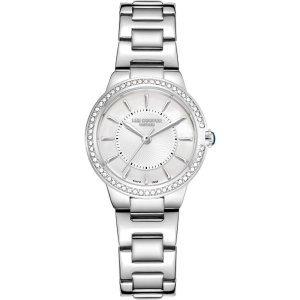 Dámske náramkové hodinky Napájanie z batérie Strojček SEIKO VJ32 Priemer puzdra 36,0 mm Puzdro v tvare kruhu Oceľové puzdro Strieborná farba puzdra Oceľový ťah Strieborná farba ťahu Ručičkový ciferník …