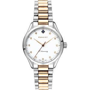 Dámske náramkové hodinky Napájanie z batérie Strojček MIYOTA GL20 Priemer puzdra 32,0 mm Puzdro v tvare kruhu Oceľové puzdro Strieborná farba puzdra Oceľový ťah Strieborná/zlatá farba ťahu Ručičkový ciferník …