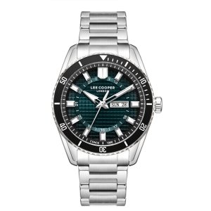 Pánske náramkové hodinky Napájanie z batérie Priemer puzdra 42,0 mm Puzdro v tvare kruhu Kovové puzdro Strieborná farba puzdra Kovový ťah Strieborná farba ťahu Ručičkový ciferník Zelená farba ciferníku …