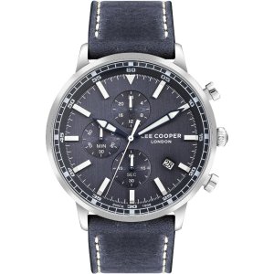 Pánske náramkové hodinky Napájanie z batérie Priemer puzdra 45,0 mm Puzdro v tvare kruhu Kovové puzdro Strieborná farba puzdra Kožený ťah Modrá farba ťahu Ručičkový ciferník Modrá farba ciferníku Ciferník …