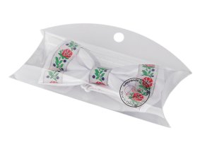 Saténový motýlik s folklórnymi motívmi je vhodným doplnkom k akémukoľvek obleku - dodá mu osobitý šarm.