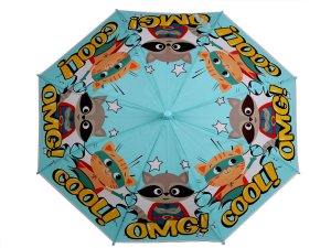Detský dáždnik s jednofarebným poťahom s potlačou zvieratiek v módnych pastelových farbách má už väčšiu veľkosť.