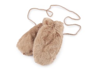 Detské rukavice palčiaky z umelej kožušiny majú na dolnej strane hravý prvok v podobe medvedích labiek a pazúrikov.