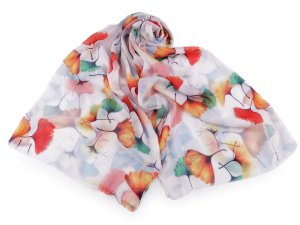 Šatka s obľúbeným vzorom listov ginkgo je vzdušná a ľahučká, veľmi príjemná na dotyk.