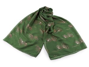 Šatka s metalickou potlačou vetvičiek je veľmi príjemná na dotyk, je vzdušná a ľahká.