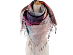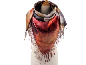 Šatka so vzorom farebného mramoru je ľahučká, vzdušná, príjemná na dotyk.