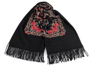 Veľká vlnená šatka typu kašmír je elegantným módnym doplnkom, ktorý zaujme svojou nádhernou výšivkou.