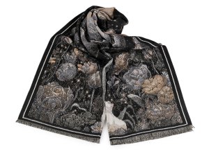Veľká luxusná šatka typu kašmír je ozdobená kvetinovým motívom.