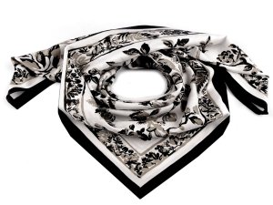 Saténová šatka s potlačou je veľmi kvalitná, elgantná, využijete ju na každodenné nosenie.