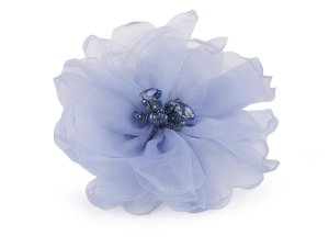 Romantická textilná brošňa kvetu z organzy má bohaté okvetné plátky, je jemne nadýchaná.