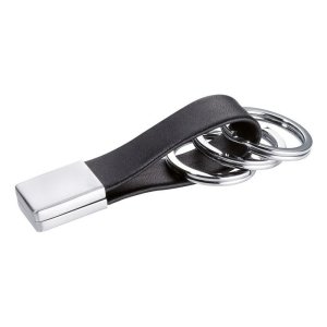 Textilný prívesok na kľúče s karabínou v čiernej farbe.