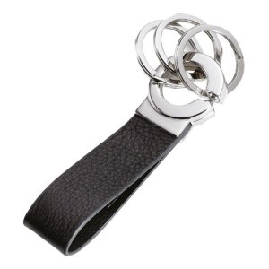 Kľúčenka s praktickým „click-lock“ zapínaním, hnedou koženou slučkou a 3 striebornými, kovovými krúžkami. Rozmery: 101 x 31 x 8 mm hmotnosť: 46 g kožená slučka …