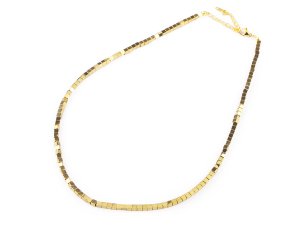 Pútavý náhrdelník vyrobený z kociek pokovovaného hematitu a kvalitnej nerezovej ocele je veľmi elegantný, patrí medzi šperky, ktoré vďaka svojej fascinujúcej povrchovej úprave zaujmú na prvý pohľad.