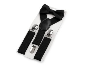 Detský set sa skladá z jednofarebných trakov a motýlika.