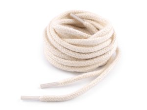 Okrúhle bavlnené šnúrky sú opatrené koncovkami.