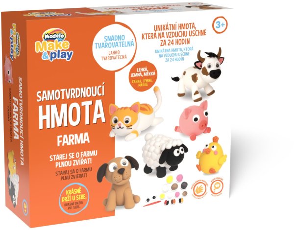 Balenie tvrdnúcej hmoty obsahuje návody, ako vymodelovať zvieratká, ktoré sú vyobrazené na obale. To je skvelá inšpirácia pre začiatočníkov.