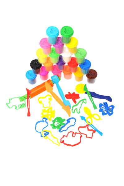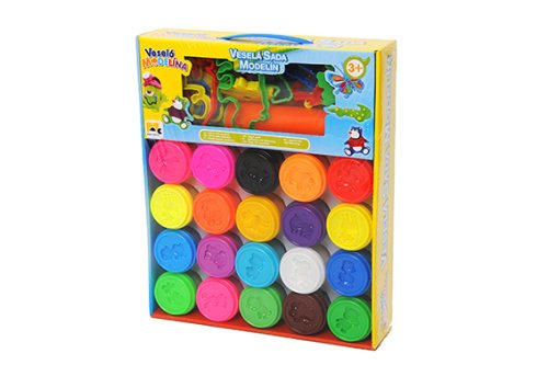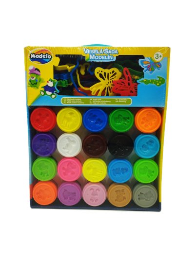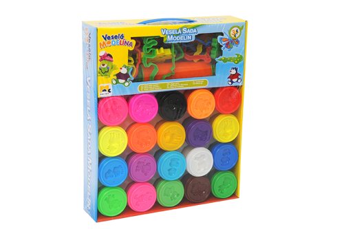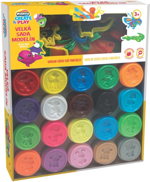 Veľká sada modelín, ktorá obsahuje 20 téglikov a množstvo tvarovátok a vykrajovačov pre tvoje tvorenie. Viečka jednotlivých téglikov môžeš použiť ako vytlačovátka.