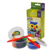 • balenie obsahuje 6 farieb (v dvoch téglikoch 30g + 15g) pre vytvorenie konkrétnej postavičky - sova, návod a plastové modelovacie špachtle