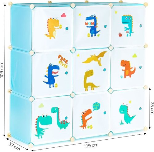modulárna skrinka sa skladá z 9 políc (priehradiek), ktoré je možné ľubovoľne aranžovať, aby sa nábytok prispôsobil individuálnym potrebám a preferenciám dieťaťa ľahká konštrukcia vyrobená z odolných panelov z polypropylénu (ABS), ktoré sú posilnené kovovým rámom pre dodatočnú pevnosť a stabilitu každá z políc môže pojať až 3 hračky alebo kocky rozmery skrinky: 109 x 109 x 37 cm výška jednej priehradky: 35 cm