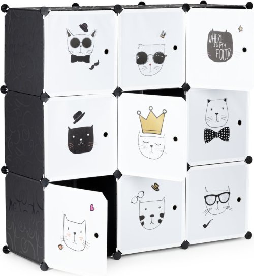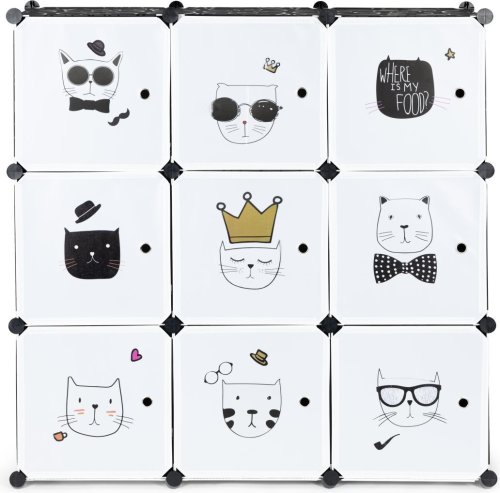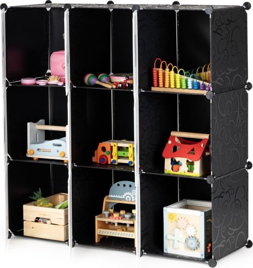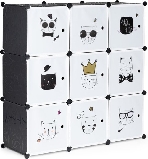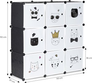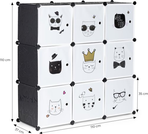 modulárna skrinka sa skladá z 9 políc (priehradiek), ktoré je možné ľubovoľne aranžovať, aby sa nábytok prispôsobil individuálnym potrebám a preferenciám dieťaťa ľahká konštrukcia vyrobená z odolných panelov z polypropylénu (ABS), ktoré sú posilnené kovovým rámom pre dodatočnú pevnosť a stabilitu každá z políc môže pojať až 3 hračky alebo kocky rozmery skrinky: 109 x 109 x 37 cm výška jednej priehradky: 35 cm