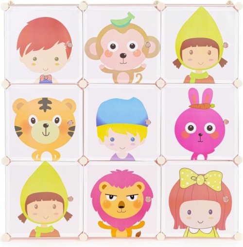 modulárna skrinka sa skladá z 9 políc (priehradiek), ktoré je možné ľubovoľne aranžovať, aby sa nábytok prispôsobil individuálnym potrebám a preferenciám dieťaťa ľahká konštrukcia vyrobená z odolných panelov z polypropylénu (ABS), ktoré sú posilnené kovovým rámom pre dodatočnú pevnosť a stabilitu každá z políc môže pojať až 3 hračky alebo kocky rozmery skrinky: 109 x 109 x 37 cm výška jednej priehradky: 35 cm