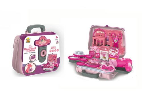 Súčasťou sady sú hrebienky, zrkadlá, voňavky, fén, nožnice. Všetky doplnky sú uschované v praktickom kufríku.