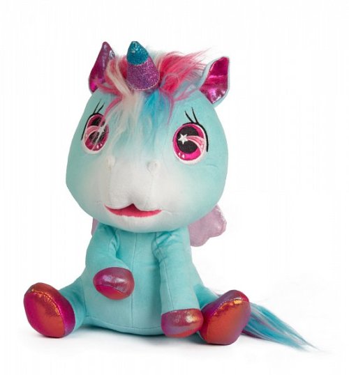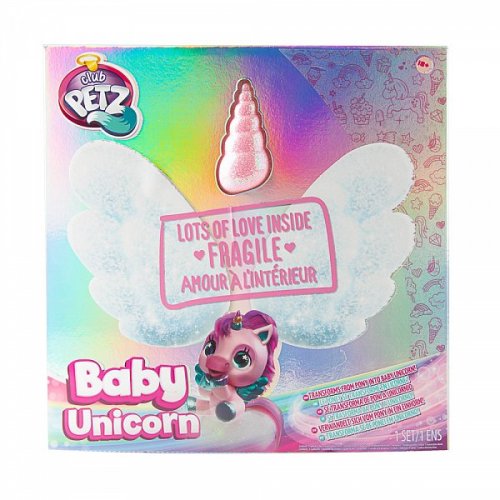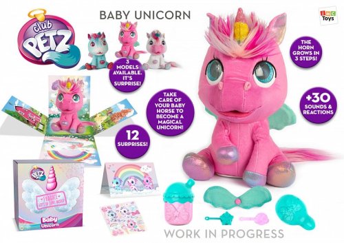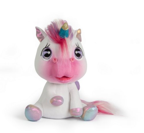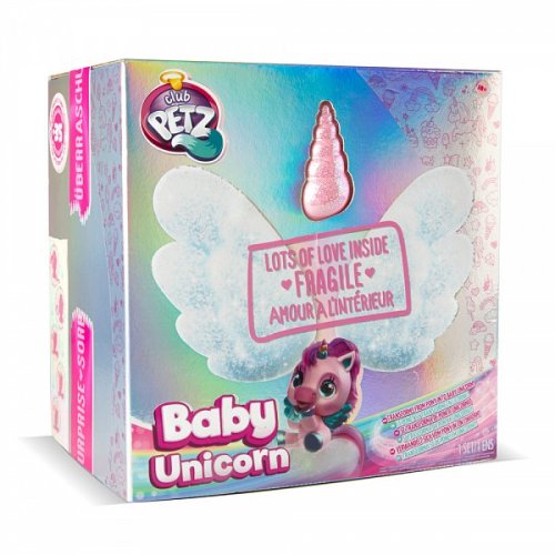 Interaktívny plyšový poník, ktorý sa mení v jednorožke 12 prekvapení (krídla, fľaša, sponky, samolepky, obojok s príveskom, hrebienok a certifikát o adopcii) Viac ako 30 zvukov a interakcií Pohlaď a nakŕm poníka a uvidíš, ako mu postupne rastie roh fáza rastu) a pritom začuješ zábavné zvuky Aby si dokončil premenu v jednorožke, pripni krídla 3 rôzne vzory a farby hračky (vzor a farba je prekvapením). Vyžaduje 3x AA batérie, nie sú súčasťou balenia.