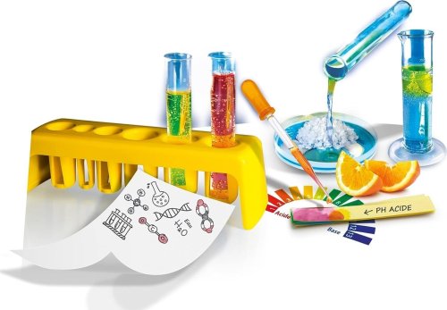 „Kompletné laboratórium s bohatou sadou vedeckých prístrojov na vykonávanie 150 experimentov, ktoré sú bezpečné a jednoduché. Vďaka ilustrovanej príručke môžete vykonávať zábavné experimenty s každodennými a chemickými látkami. 8+“