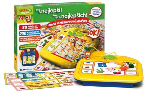 Moja prvá nemčina - zábavná elektronická náučná hra. Dvojičky Carotina vydávajú pri každej správnej kombinácii veselé zvuky! Táto náučná hra z radu náučných hier Carotina zahŕňa viac ako 200 na seba nadväzujúcich hier a je určená pre deti od troch rokov. Nauč sa hravou formou abecedu, čísla, farby a mnoho ďalšieho – a to všetko v nemčine.