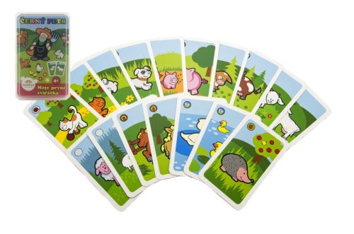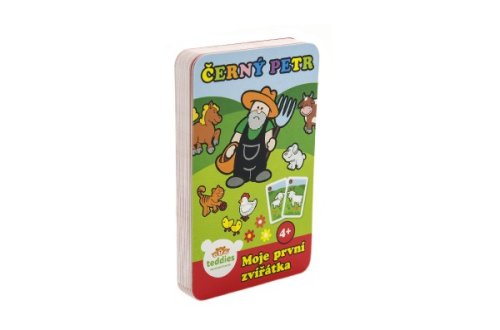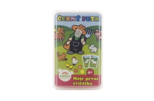 Kto sa zbaví všetkých svojich kariet s rovnakým označením a komu na konci hry zostane v ruke Čierny Peter? Karty: 25 kariet - 12 dvojíc označených rovnakým symbolom + 1 Čierny Peter, v papierovej krabičke