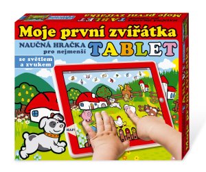 Tablet Moje prvé zvieratká zoznamuje deti so zvieratkami, s ktorými sa môžu stretnúť na farme a učia ich, aký zvuk vydáva kačička, aký kravička, aký sliepočka a ostatné tradičné slovenské zvieratká. Vďaka tabletu si deti zábavnou formou rozvíja predstavivosť, motoriku, rozprávanie a logické myslenie a učia sa rozoznávať farby, zvuky a melódie. Veľkosť tabletu: 24 x 19 x 1,5 cm. Batérie 3xAA nie sú súčasťou výrobku. Rozmery balenia 30 x 25 x 4 cm. Vhodné pre deti od 3 rokov.