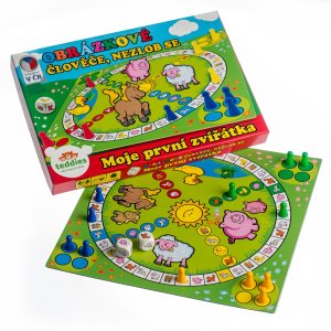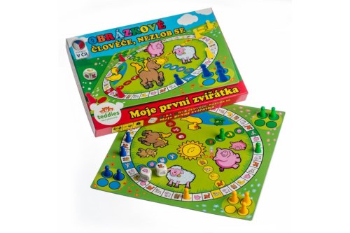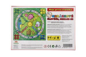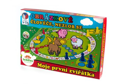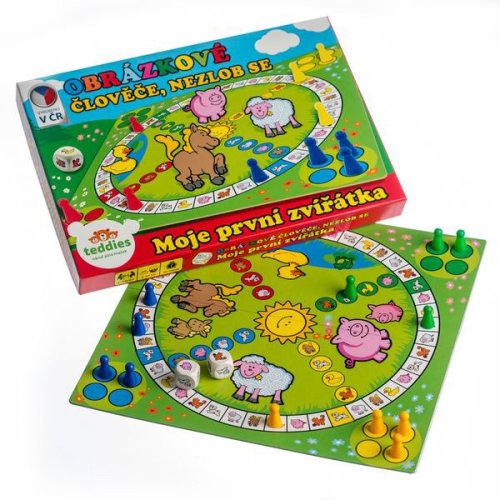 Obrázková verzia hry Človeče nehnevaj sa, ktorú zvládnu aj tí najmenší. Namiesto čísel sú na hracej kocke vyobrazené motívy zvieratiek, podľa ktorých hráči postupujú po hernom pláne. Hru tak ľahko pochopia aj malé deti a vďaka veselým obrázkom sa nielen bavia, ale aj učia. Balenie obsahuje: herný plán, 16 figúrok v 4 farbách, hraciu kocku s obrázkami a návod. Rozmer krabice: 33 x 23 cm Vhodné pre deti od 3 rokov