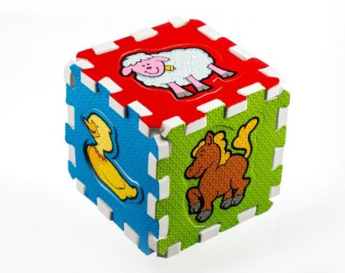Obsahuje 6 penových dielov s vyberateľnými dielikmi zvieratiek, z ktorých sa dá zostaviť kocka. Rozmer dielika 15 x 15 cm. Vhodné od 3 rokov.
