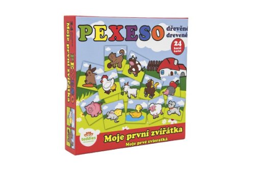 Drevené pexeso s motívom domácich zvieratiek rozvíja jemnú motoriku dieťaťa a pamäť. Pexeso je ideálny pre menšie deti, diely sú oveľa trvanlivejšie ako papierové prevedenie. Vhodné od 12 mesiacov