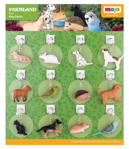 Displej obsahuje 36 ks príveskov na kľúče s motívom domácich maznáčikov. Prívesok je možné použiť ako štýlový doplnok na kľúče alebo ako malý darček k narodeninám.