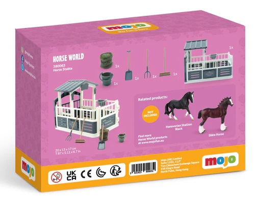 Novinka júl 2023 - Spoznajte svet koní a ich potrieb na chov! V tomto sete nájdete stajňu aj s vybavením, kde koníci bývajú. Z vybavenia je tu lopata, vydle, zmeták, kýblik, vrece ovsa a košík na seno. Táto realistická stajňa môže deťom dopomôcť spoznávať skutočné vlastnosti a charakter jej predlohy. Každý produkt je prísne testovaný podľa širokej rady medzinárodných štandardov. Ohrada je ručne maľovaná. Kone nie sú súčasťou balenia. Upozornenie: Nie je vhodné pre deti do 3 rokov, obsahuje malé súčasti - hrozí nebezpečenstvo udusenia. Baliaci materiál nie je hrač ka. Hlavné vlastnosti: ručne maľovaná ohradavierohodné detaily aj sfarbenievyrobené z PVC bez ftalátovvhodné od 3 rokov