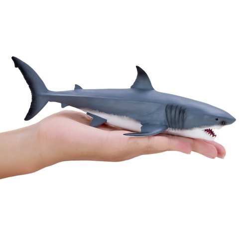 Žralok biely či veľký biely žralok sa vyskytuje väčšinou v pobrežných vodách, dosahuje spravidla dĺžku do 5 ma dožíva sa aj viac ako 70 rokov. Patrí k najrýchlejším žralokom, môže nakrátko zrýchliť až na 56 km/h. Hodnovernosťou a kvalitou spracovania ľahko zaujme aj zberateľov. Vyrába sa v najvyššej kvalite z PVC bez ftalátov a je ručne maľovaná tak, aby každý detail zodpovedal originálu. ftalátovopatrené licenciou rešpektovaných dokumentaristovnavrhnuté v spolupráci s komunitou zberateľovextra veľká veľkosť