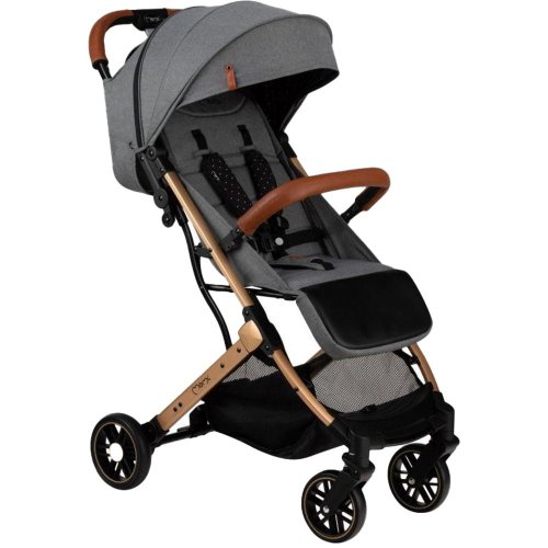 Ľahký a ľahko ovládateľný Vysoko kvalitné polyuretánové pneumatiky odolné proti prepichnutiu Tlmenie nárazov všetkých 4 kolies Veľkosť kolies: predné 6", zadné 6,5" Kompaktné rozmery v zloženom stave Nastaviteľná opierka chrbta Nastaviteľná opierka nôh s ľahko čistiteľnou podšívkou z ekologické nastupovanie Päťbodové bezpečnostné pásy Odnímateľné ochranné madlo Rozšíriteľná strieška s 2 oknami Poťah chrániaci pred UV žiarením Pohodlná nožná brzda Dvojvrstvová pohodlná rukoväť a ochranné madlo s vrstvou peny a podšívkou z ekokože, ktorú je možné vybrať Ľahké skladanie a rozkladanie ľahké tlačenie zloženého kočíka Dvojitá poistka zabraňujúca samovoľnému skladaniu kočíka Zámok proti rozloženiu kočíka Priestranný košík Reflexné prvky na strieške Starostlivé povrchové úpravy, jedinečný dizajn Od 6. mesiaca života Do 15 kg
