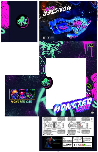 RC Monster auto 2.4G so svetelným efektom sa pohybuje doľava, doprava, dopredu a dozadu. Maximálna rýchlosť 5km/h. Frekvencia 2405MHz - 2475Mhz, maximálny rádiofrekvenčný výkon 5mW, dosah diaľkového ovládania 20 m.