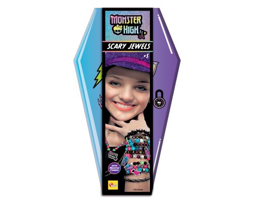 Monster High DIY sada na výrobu strašidelných náramkov. Krabička v tvare rakvičky. Obsah balenia - korálky, háčiky, povrázky, a prívesky s motívmi príšeriek.