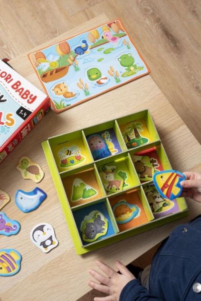 Zaraďovacia hra na objavovanie a spoznávanie zvieratiek založená na metóde Montessori. Tento druh Montessori hier pomáha deťom učiť sa zábavným a efektívnym spôsobom s využitím všetkých ich zmyslov. Vhodné pre deti od 1 roku.