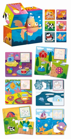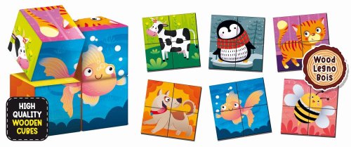 Drevené kocky so zvieratkami na precvičenie logického myslenia. Vhodné pre deti od 1 roku.