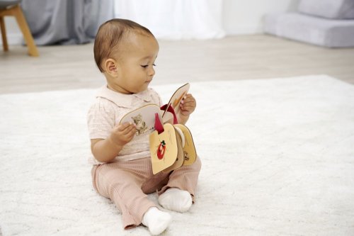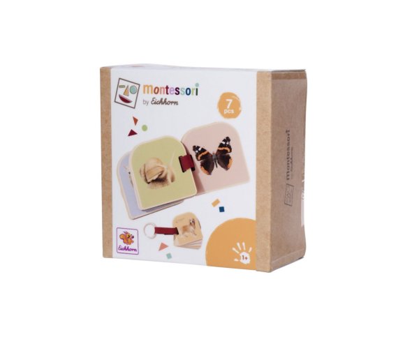 Krásna drevená knižka je prvým spoločníkom vášho dieťaťa. Na 6 drevených stránkach nájdete z oboch strán roztomilé obrázky zvieratiek. Knihu je možné pomocou krúžku pripevniť ku kočíku alebo autosedačke. Alebo ju umiestnite pred dieťa, aby si mohlo obrázky prezerať samo. Veľkosť a zaoblené rohy sú ideálne pre malé detské ruky. Obrázková knižka Montessori je vyrobená zo 100% lipového dreva s certifikátom FSC a je vhodná pre deti od 1 roku.