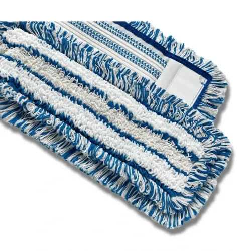 Hospitalmopp EVO7 je vyrobený zo zmesi mikrovlákna a bavlny. Táto kombinácia vlákien vytvára mop s vynikajúcimi kĺzavými vlastnosťami a zároveň oveľa vyššou absorpciou nečistôt ako bežné bavlnené mopy. Farebné označenie je dané farbenými priadzami. Vrecko mopu je vyrobené z robustného polyesterového vlákna. Slučka zvnútra, strapce zvonku. Mop je možné prať pre 60 – 95 °C a je vhodný na sušenie v sušičke. Farba modrá. Uchytenie mopu vreckom. EAN 0000006555108
