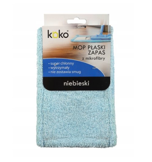 Náhradná mikrovláknová handra k mopu 402844 KOKO BLUE. Možnosť použitia na iné ploché mopy s vreckovým uchytením o šírke 40 cm. Rozmery 42 x 14 cm. Maximálna veľkosť pätky mopu 39.5 x 9 cm. Možnosť prania na 60 °C. Vhodný na všetky typy podláh, suché aj mokré čistenie. Vyrobené z vysoko kvalitného savého mikrovlákna. Nezanecháva žiadne šmuhy. Farba podľa skladovej dostupnosti. EAN 5902041302042