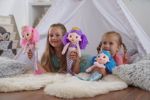 Látková morská panna s dlhými vlasmi a korunkou. Veľkosť 30 cm.