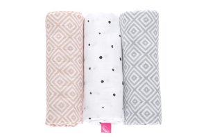 Súprava obsahuje 3 ks plienok v rôznych dizajnoch. Oeko-Tex Standard 100.